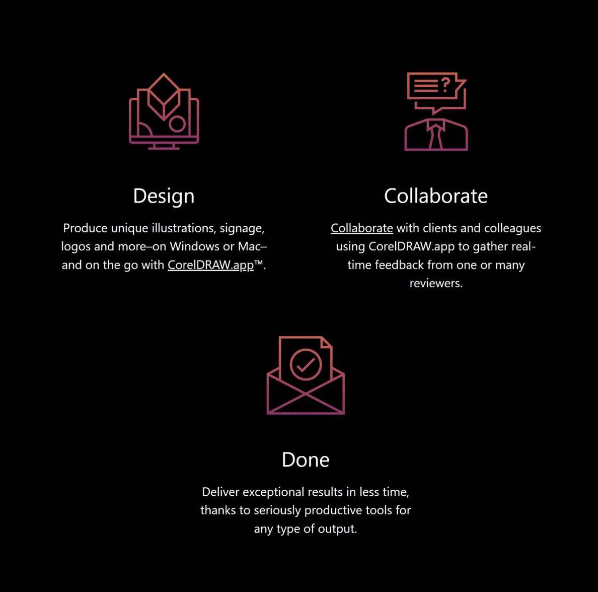 CorelDRAW® Graphics Suite offers you a wide range of productive tools that allow you to easily and quickly achieve remarkable results, regardless of the type of output