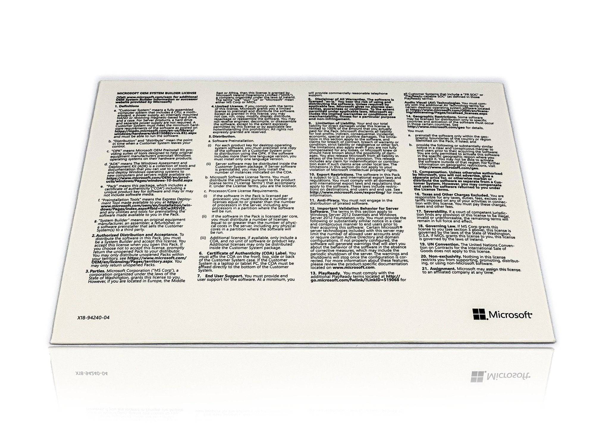 - 1 x Microsoft Windows Server 2019 DataCenter - Full version 64-bit OEM DVD.